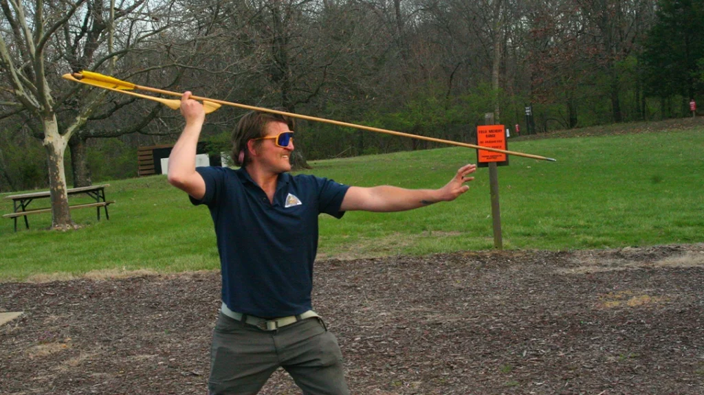 Mitchell Lockwood of Marceline, Missouri, owner of Atlatl Madness, was introduced to the atlatl by a coworker.